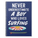 **Titel:** Marinblå Surfarpresent till Pojkar Surfande Surf Notisblock - Underskatta Aldrig En Pojke.
