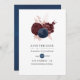 Marinblå, vinröd och roséguld vintage spara datum inbjudan designad för att snabbt och enkelt anpassas till ditt evenemang.