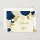 Romantiska marinblå & vita blommor med gyllene blad botanisk bröllops tackkort.