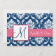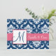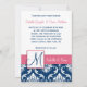 Marinblåa damastast Monograminbjudanrosor Inbjudningar