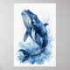 Marinblått akvarell valfisk strand barnkammare väg poster