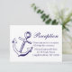Informera dina gäster om var ditt bröllop eller nästa stora evenemang kommer att äga rum med detta underhållande marinblå och vita fartygsankare mottagningskort.