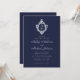 Marinblått Monogram Vintage Crest Elegant Bröllop Inbjudningar