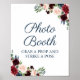 Marinblått och Marsala Blommig Bröllopsfotobås-sky Poster