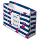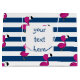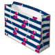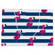 Sötsak och sommardesign som lite presenterar den gulliga bebisflamingoen, vit och marinblåa randar.