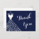 Marinblått snöflingorbröllopsklänningtack tack kort