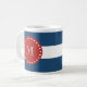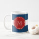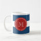 Marinblått vitrandmönster, röd Monogram Kaffemugg
