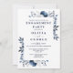 Denna eleganta marinblå och vita blommiga inbjudan till engagemangsfest kan anpassas med din information i modern typografi och ett speciellt foto på baksidan. Designad av Thisisnotme©