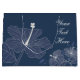 Denna marinblå blomsterbotaniska papperspresentbag har en elegant blommande blommillustration med mjuka linjedetaljer för en modern och stilren look. Tryckt i hög upplösning på hållbart papper med starka handtag, är den perfekt för födelsedagar, årsdagar, bröllop och speciella firanden. Den släta matta finishen ger den en premiumkänsla och säkerställer att den ser vacker ut på bilder och i utställningar. Textområde på framsidan låter köpare lägga till egen text för namn eller datum, vilket gör den lämplig för partygavor, evenemangspaket och boutique-handelsposer. Anpassning av bakgrund och text finns tillgänglig på begäran.