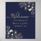 marin guld bröllops välkomstskyltelegantblommig bröllops affisch skyltromantiskklassisk marin bröllopsdekorationlyxblå och guld brölloppsskyltmodernvälkomstskylt för ceremonikalligrafi