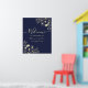 Elegant och tidlös, denna välkomstskylt för bröllop i marinblått och guld har romantiska, handritade blomillustrationer i falskt guldblad. Det moderna kalligrafiska skrivsättet ger en sofistikerad touch och gör den perfekt för formella eller kvällsbröllop. Anpassa med parets namn och bröllopsdatum för att välkomna era gäster med stil.