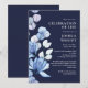 Denna eleganta marinblå blommiga firande av liv och minnes-inbjudan kan anpassas med din information i klassisk typografi. Designad av Thisisnotme©