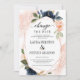 Modern och elegant design tryckt Marinblå och rosablommig blomning och geometrisk ram Ändra planer Inbjudan som kan anpassas med din text. Vänligen klicka på "Anpassa"-knappen och använd vårt designverktyg för att ändra denna mall. Kolla in Graphic Art Design-butiken för andra produkter som matchar denna design!