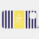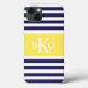 Skydda din telefon eller apparat i stil med ett enkelt, modernt och snyggten görat randig mönsterdesignfodral eller täcka, som är beställnings- monogrammed med ditt första, mittet- och efternamninitialer i en preppy stilsort. Marinblåa och vithorisontalrandar kontrasterade med en citron - gul färgkvarterbakgrund. din gåva, genom att tillfoga din egna initialer. Välj dina egna stilsort och färger för att göra det ditt eget. Denna ska moderiktiga design gör en underbar gåva för dig eller någon som är speciella. Välj ditt modellerar - fodral för iPhone 6.