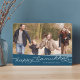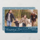 Hanukkah hälsning med vänner och familj med vår elegant och det moderna Hanukkah-fotokortet, som innehåller ditt favoritfoto med överlappande band av djupblått havsvatten och "Lycklig Hanukkah" i modern handskriven stil-typografi. Anpassa till din familj namn eller anpassningsbar hälsning.