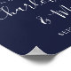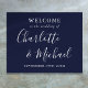 Designad för att samordna med vår marinblå signatur skript bröllopssamling. Med signaturstil namn, kan detta eleganta välkomstskylt anpassas med din bröllopsinformation i chic vit bokstav. Designad av Thisisnotme©