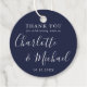 Designad för att samordna med vår signaturbröllopssamling. Med signaturstilnamn kan denna eleganta marinblå och vita tacksamhetsetikett anpassas med dina speciella tackdetaljer i chic vit bokstav. Designad av Thisisnotme©