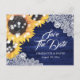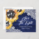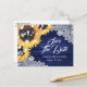 Personliga rustika marinblå och solros bröllop spara datum vykort idealiska för ditt marinblå rustika land-, bakgårds- eller lada bröllopsfest inspirerad av solros blommor.