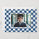 Fira din examenand med denna moderna inbjudan till examensfest med en djärv marinblå ”Backyard BBQ”-layout i kombination med ett stort foto. Baksidan har ett klassiskt marinblått rutigt mönster med ett inramat foto för en polerad och manlig look. Anpassa med examenandens namn, datum, tid och festdetaljer för en lätt och iögonfallande inbjudan.