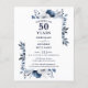 Denna eleganta, marinblå 50-års bröllopsjubileum-inbjudan kan anpassas med din information i modern typografi. Designad av Thisisnotme©