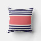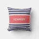 Eleganta och moderna nautiska stildekorativ kudde eller dämpar med ett modernt och snyggten görat randig nautiskt mönster som är beställnings- monogrammed med ditt namn i en preppy stilsort. Marinblåa och för vit vertikala randar kontrasterade med en bakgrund för korallfärgkvarter. Personifiera din gåva, genom att tillfoga ditt egna namn eller märka med sina initialer. Välj dina egna stilsort och färger för att göra det ditt eget. Denna moderiktiga kust- ska stranddesign gör en underbar gåva för dig eller någon som är speciella och, ska förhöjer några som är hem-, strandhus-, soffa-, vardagsrum-, sovrum-, kontors-, fartyg- eller högskoladormrum.