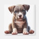 En bild av en charmerande pitbull-valp med uttryckligt blått ögon, sitta lugnt och nyfikenhet. Bilderna har realistiska detaljer, underbara för att visa oskuld, skärpa och komplementaritet med djur.