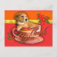 En valp sitta i kopp med hälsningskort för blommigtens hörn. Lägg enkelt till ditt eget meddelande på insidan