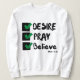Kvinnans design baseras på den bibelskript av Mark 11:24 som visar ord "Desire, Pray, Tro" ett färgpensel med svart brev och grönt och svart checklista plus bibelcitat i detta KJV-trosbaserade citattema. Den här tröjan är tillverkad av 100 % bomull och den här skjortan är både plysst och hållbar, vilket gör en underbar kombination med en mindre matchande bild tryckt på baksidan.