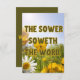 Med det här hälsningskortet visas ett medföljande teckensnitt med grönt brev gult kontur med KJV-bibelskriptversen "Mark 4:14" över ett bild som visar fält med olika blommor med grönt plus en upphöjd vy under ett tydligt blå himmel i det här färgaden och en blommigt bakåt med grönt gult brev. Den här versen refererar till Bok i det fjärde kapitlet som visar den fjortonde verbet i det här bibeltecknade temat från Kung James med ord "Med Gud kan du!" på baksidan. Utskriftsformat av hög kvalitet med färg på en 3,5-tums x 5-tums (porträtt) eller 5-tums x 3,5-tums (liggande) projektionsyta, pappert tillverkat och tryckt i USA.