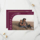 Modern and stylish save the date card featuring a text that says "mark your calendars" along the curved frame photo. One photo in the front and one on the back. The background is cranberry.