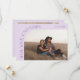Modern and stylish save the date card featuring a text that says "mark your calendars" along the curved frame photo. One photo in the front and one on the back. The background is lilac.
