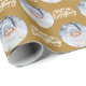 Fotoinslagning papper, personlig med bild och hand med Merry Allt i borstad kalligrafi. Fotomallen har ställts in för att visning bild i rund form. Om du har problem med placeringen i bild kan du prova att beskära fotot till en kvadrat och ladda upp det på nytt. Bakgrunden till färg är guld, som du gärna vill ändra (klicka bara på "redigera med designen verktyg").