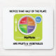 Om du är en vegetarian, eller experiment med en vegetarian bantar, ska du tycker om några av dessa wry vegetariska inställninggåvor som efter presenterar den MyPlate logotypen tillsammans med påminnelsen: "Märka att halvan av Plate är frukter & grönsaker". Gör andra att göra en försenad reaktion om rekommenderad proportionerar av frukter, och grönsaker enligt federala anvisningar för ström med några av dessa bantar och näringinställninggåvor! Notera: Inga av produkterna signeras eller sponsras av USDAEN. Dessa gåvor ämnas för att göra folk att tänka kritiskt om vad de äter!