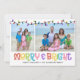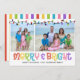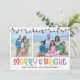 Den här julklappen för foto innehåller en sträng av helgdag ljus, två foton av dig och din familj eller bara dina barn på framsidan med ord, "Merry & Bright" och undertecknade Glad helg med din familj namn. Typsnitt är lycklig och glatt i starkt regnbåge i färg. Den har en samordnande regnbåge som är bakåtstridd. Det är så lätt att göra kortet till ditt eget. Välj Anpassa den här mallen, skriv in namn i familjen och ladda upp dina favoritfoton. Det är lätt toppen!