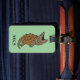 Uppsluppen tecknad som biter låsande fast sköldpaddadesign. Han är gullig och roligt och fullt av personlighet. Underbar gåvaidé. Skräddarsy din initialer på bekläda och personligt info på baksidaen. Den roliga färgrika designen hjälper att identifiera bagage snabbt.