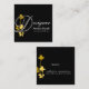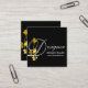 Märkes- gul rosblommigt på svart Monogram Fyrkantigt Visitkort