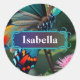 Anpassningsbarnas klistermärken med färgad fjäril på en rosa blomma. Anpassa med ditt namn eller meddelande för etiketter eller märkre.