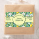 En etikett för tvål och badprodukter med bakgrund av citroner. Anpassa den med din produkt- och affärsinformation.