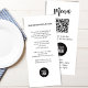 Den här designen har ett rackkort för marknadsföring, broschyrer, med service och menyer med ett trendig enkelt minimalistiskt stil, en skannerbar QR-kodmall, perfekt för restauranger och cateringar