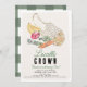 Den här söta "Locally Grown"-jordbrukarens första/första födelsedagsinbjudan på genderna har en fransk krokettmarknadspåse med grönsaker och frukt. Baksidan har en vit bakgrund med grönt gingham plaid. Anpassa efter dina behov. Du hittar matchande produkter i min butik.