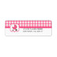 En babyduschadressetikett med en bakgrund av rosa gingham överst med rosa trim. Bild av en barnvagn i shock rosa i ram till lämnat. Anpassa med ditt namn och adress. Leta efter matchande inbjudningar i kategorin "Baby Shop" i Rosa Schoolhouse.