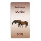Denna vackra röda vin flaska-etikett har två bruna beteshästar på en bronsgradient. All text kan anpassas med speciell information.