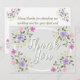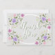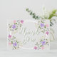 En cirkelformad gräns som är gjord av blomsprit i en pastel färg gör en snyggt för det här tackkortet från bröllop.