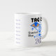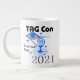 MÄRKRE Con 2021 Quantum Blue White Mugg till minne av Vera Nazarian den andra årliga konventionen om virtuell online för MÄRKRE Fläkt - Fläkt av Atlantis Grail-serien av science fiction bokar.