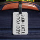 Bagagemärkren med läder fäster stativ ut i bagagekarusellen med en beställnings- bagagemärkre från Zazzle! Inte större än en visitkort och konstruerat av akrylen 100%, är denna bagagemärkre det klara stativ-upp till resabegärningarna av någon vägkrigare eller äventyrsökare. Producerat genom att använda den AcryliPrint®HD printingbehandlingen, visar din bagagemärkre designer, text och foto i vibrerande klarhets- och briljantfärger. Skräddarsy med din personliga information på varje sida, och flykten hänger lös blandningen ups för år till komen. Gjort av ultra-kapitalvara akryl. UV resistent och waterproof. Läderbagage fäster inklusive. Format 2" x 3,5" (visitkortformatet).