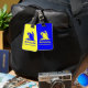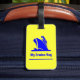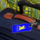 För din nästa kryssning. en märkre för spotter för kryssningfraktbagage i ljus blått och gult.