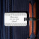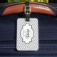 Denna härliga bagagemärkre presenterar en sparreranddesign av grått, och vit beklär på och drar tillbaka med områden som du kan skräddarsy med ditt namn och den initiala, såväl som telefonnummer eller fulla adressen för efternamn.