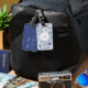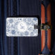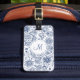 Härlig och elegant vintageblåttblommönster på blek bakgrund. Den sofistikerade och kvinnliga bagagemärkren med anpassademonogramen på vit cirklar. Du kan lätt ändra text (stilsort, att storleksanpassa, färga och placera), cirkla (formatet och att placera) och format av den blom- designen. Matcha bagage, täcker bagagehandtagsjalen, passhållaren, checkhäfte och mer…, Glöm inte den hela samlingen av vintageblommönster med monogramen.