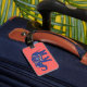 Betonar den stilfull korall färgade bagagemärkren med diagram av en blåttelefant med den färgrika blomman. Baksidaen av märkren har den beställnings- textredot för blått som ska personifieras.