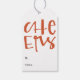 Den här märkrn med helgdag innehåller en roligt, handskrivet "cheers"-format mot en ren vit bakgrund och en roligt av grönt på baksidan. Håll ut från presenter till vin flaskor för varje gåva du ge i julhelg. Par perfekt med fullt "Cheers"-linjen!